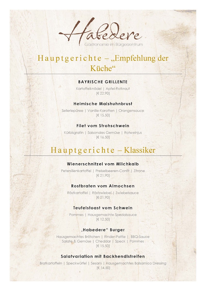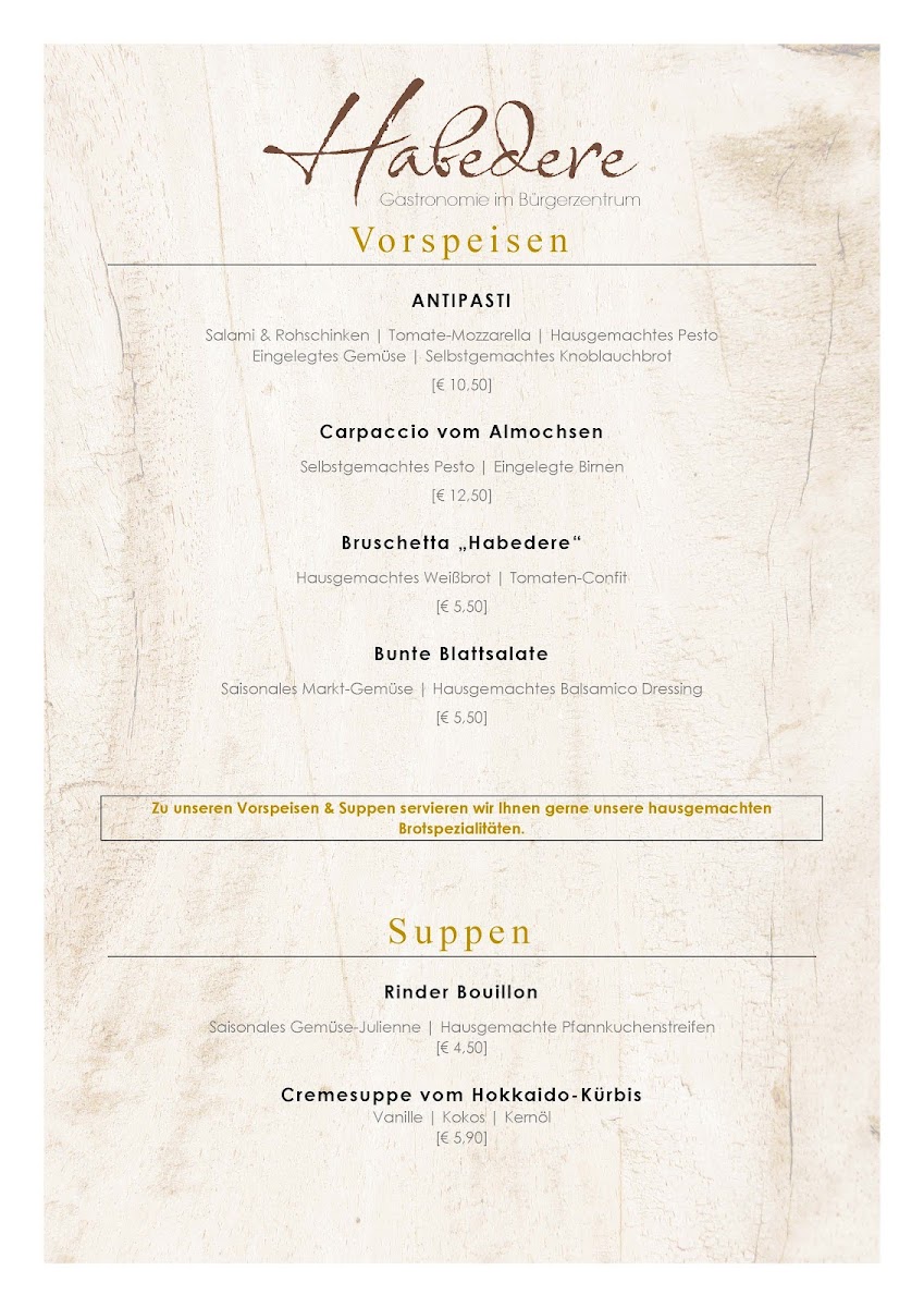 Habedere Menu